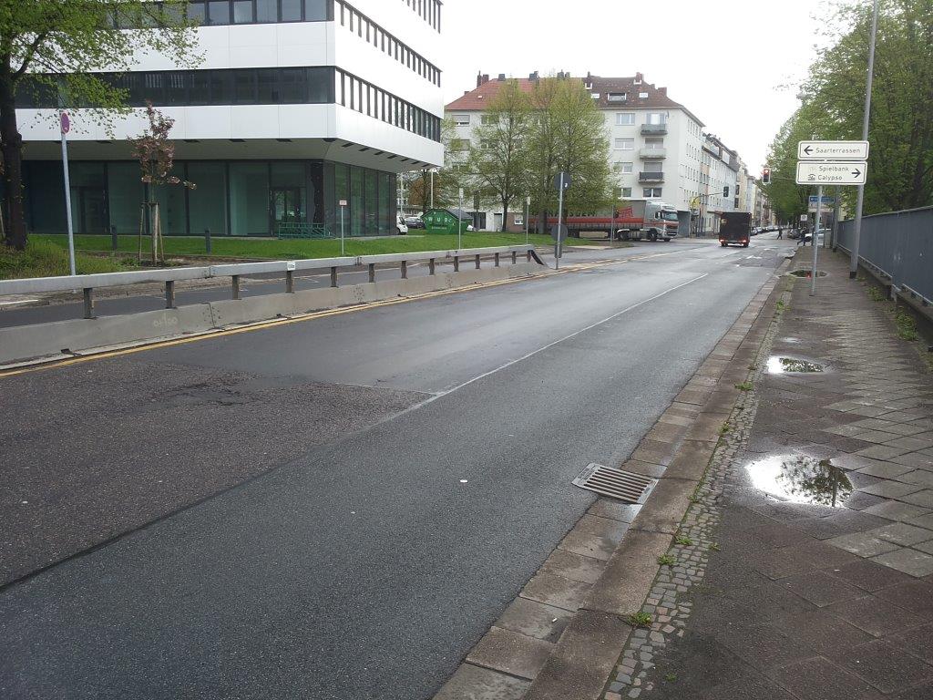 An der Einfahrt zum HTW- Parkhaus wird eine neue Lichtsignalanlage errichtet, um das Parkhaus verkehrstechnisch an den bestehenden Knoten anzuschließen. Zur Trennung der Richtungsfahrbahnen in der Hohenzollernstraße wird eine bepflanzte Mittelinsel angelegt…