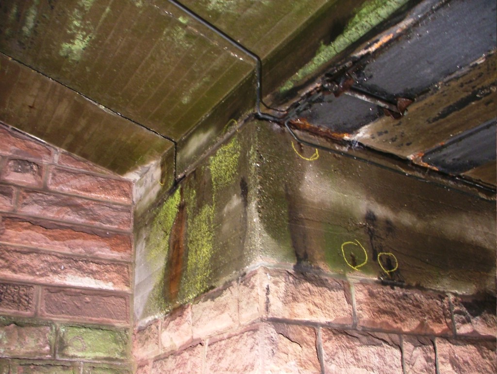 Eine Brücke überspannt das Gewässerr “Oster”. Der Korrosionsfortschritt der Tragbewehrung war derart weit fortgeschritten, dass eine umgehende Brückensperrung erforderlich wurde. Bis zur Schaffung eines Ersatzbauwerks wurde eine einfeldrige Hilfsbrücke aus Aluminium für Fußgänger und Radfahrer so aufgebaut, dass der alte Überbau nicht zusätzlich belastet wird.