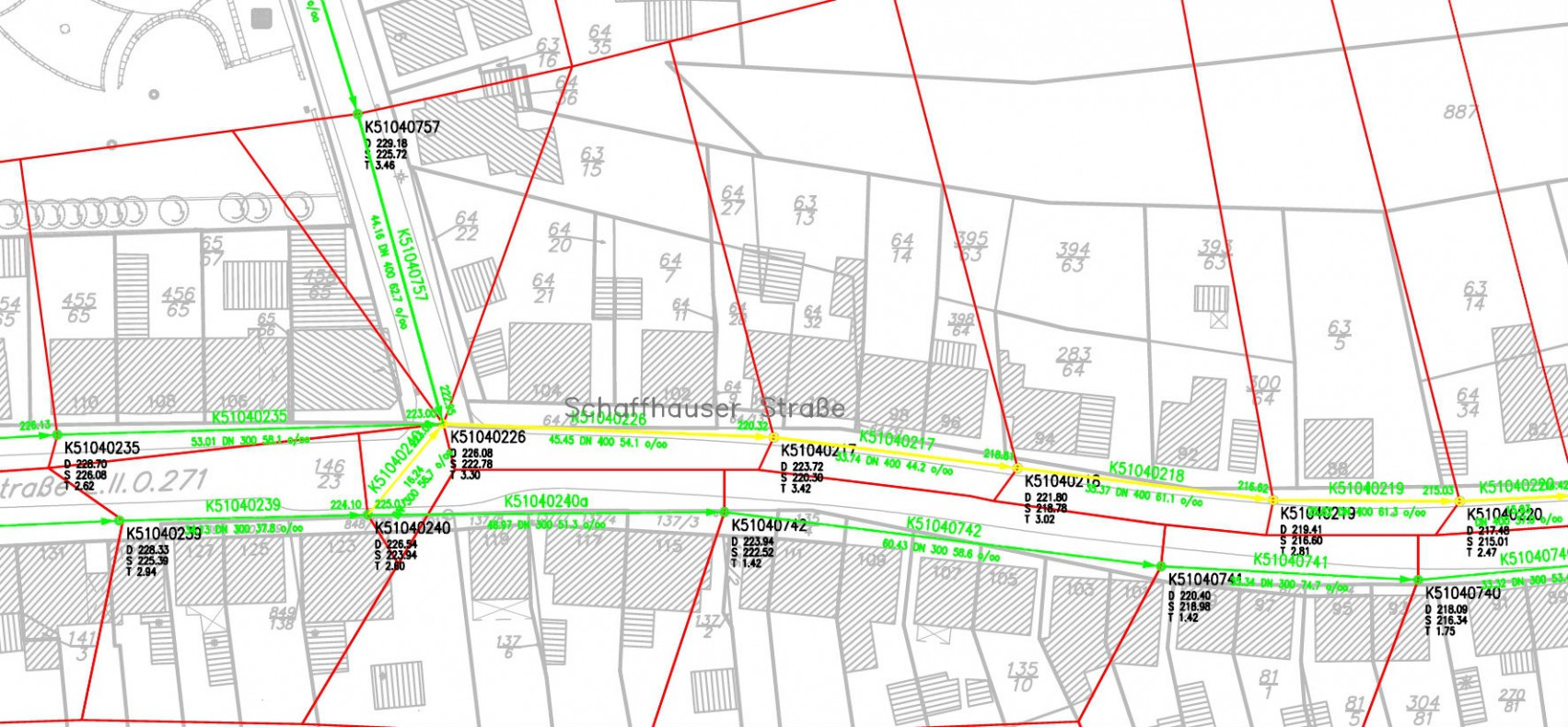 Die durchgeführte hydraulische Bestandsnachrechnung ergab, dass ein Überstauereignis selbst bei einer Niederschlags-Jährlichkeit von 10 Jahren nicht eintreten dürfte.