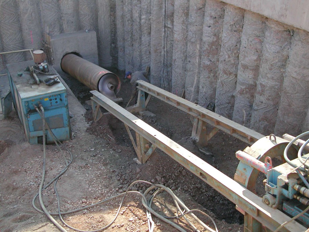 Die Ableitung ins Gewässer wurde durch eine 40 m lange Bohrung DN 600 aus Stahl in die ein Medienrohr DN 400 GfK eingezogen wurde, realisiert. Die Drosselung erfolgt durch eine Ventildrossel.