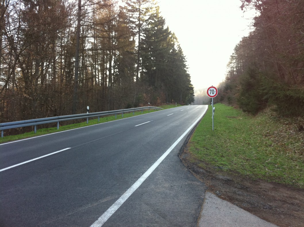 Auf 3 km Länge wurde der bestehende Asphaltbelag aufgenommen und durch eine neue Binder- und Deckschicht ersetzt. Gleichzeit wurden die Bankette gefräst und neu angelegt. Zudem wurden die Fahrbahnmarkierungen wieder hergestellt.