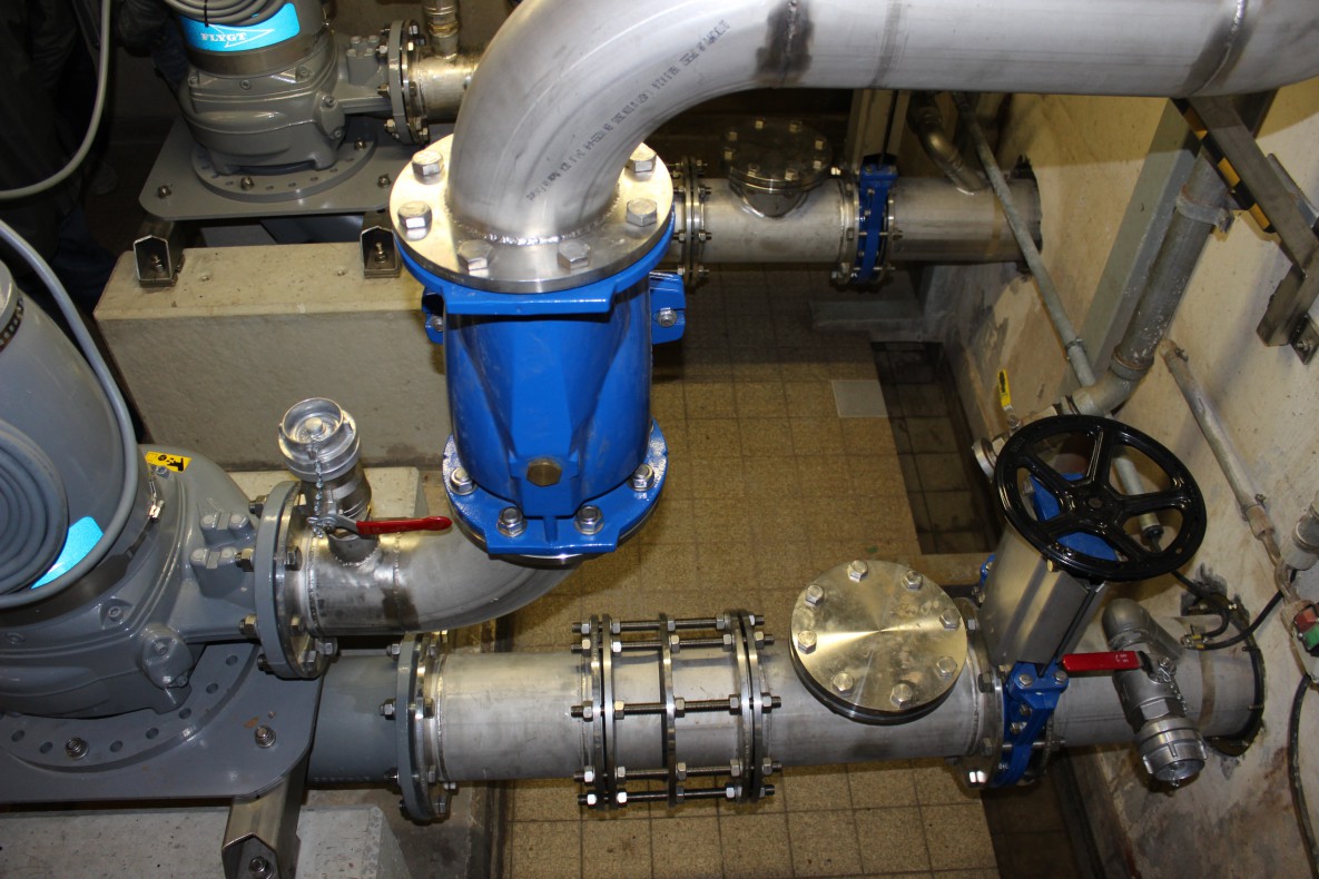 Das Trockenwetter-Pumpwerk Oberlinxweiler wird zukünftig mit einer Leistung von 30 l/s ausgelegt, um die vorhandenen Druckleitung DN 200 mit einer Länge von 450 Meter zu erhalten. Es werden 2 trocken vertikal aufgestellte Pumpen mit Frequenzumrichter eingebaut und die Saugleitung von DN 100 auf DN 200 vergrößert.